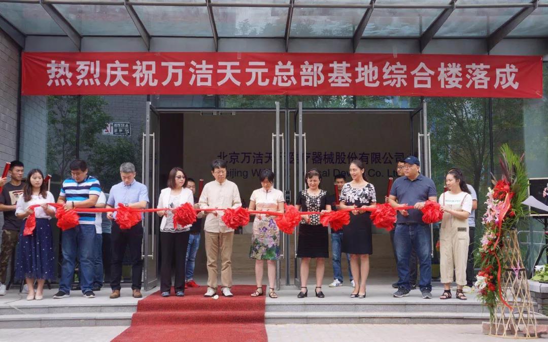 秋風(fēng)送爽千山脆,瑞氣迎臨萬象新。2018年08月18日,在這滿目清翠、秀竹飄香、熱烈喜慶的大好日子里,北京萬潔天元醫(yī)療器械股份有限公司(Beijing WANJIE Medical Device CO.,LTD)隆重舉行北京萬潔天元總部綜合大樓落成剪彩儀式,這是北京萬潔天元醫(yī)療器械股份有限公司建設(shè)史上的一大盛事,也是萬潔天元蓬勃發(fā)展的又一里程碑。
