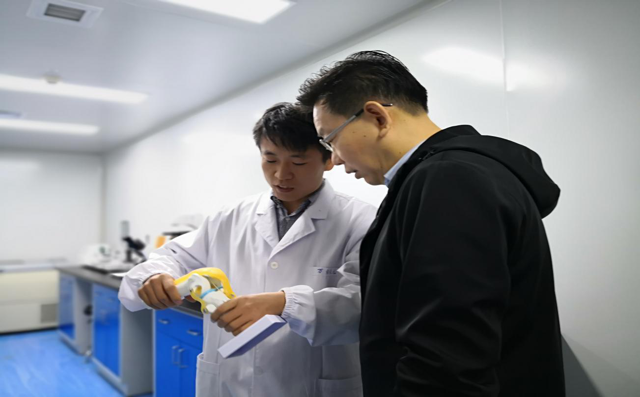 接下來,高區(qū)長一行領(lǐng)導(dǎo)還參觀了三樓研發(fā)實驗室,研發(fā)部項目經(jīng)理史博士向高區(qū)長重點介紹了各類設(shè)備和器械的功能以及目前開展的各類實驗,高區(qū)長對產(chǎn)品的各項實驗進展做了了解,鼓勵企業(yè)在技術(shù)創(chuàng)新上多下功夫。
